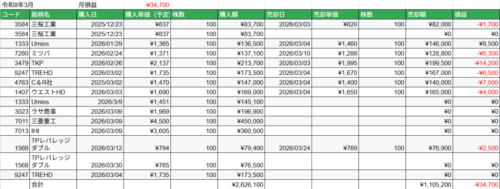 株取引3月の結果